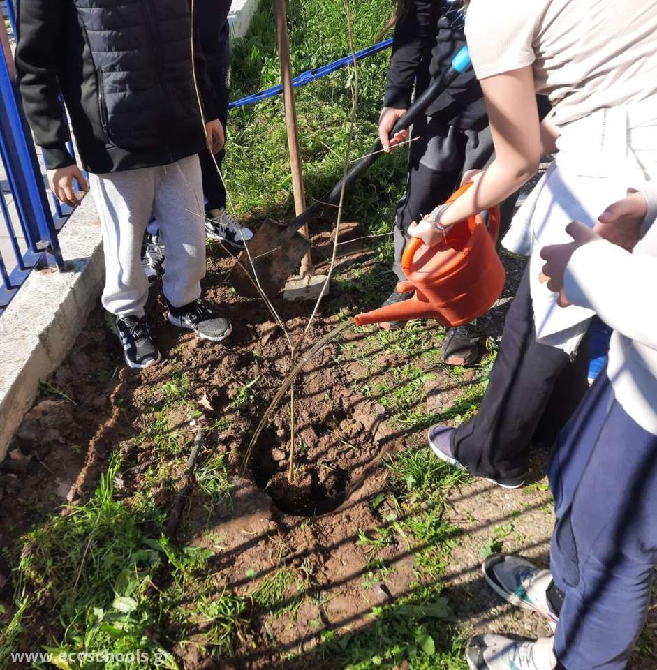 Πραγματοποιήθηκε και φέτος η καθιερωμένη δεντροφύτευση στην αυλή του σχολείου μας.