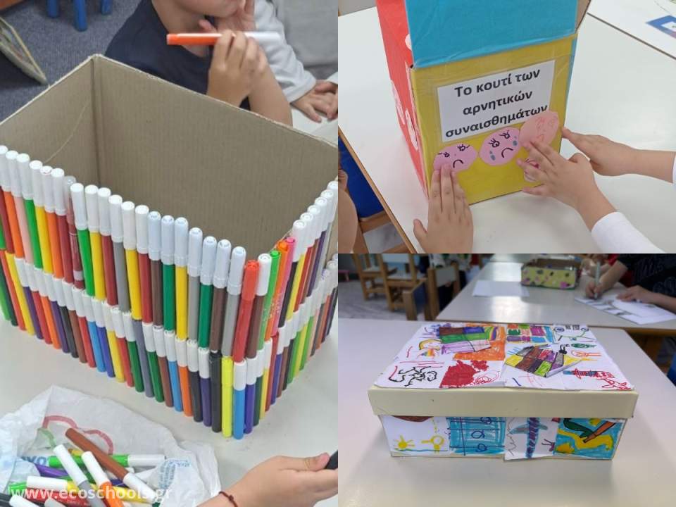 Στο Οικολογικό και Αειφόρο νηπιαγωγείο μας, τα παιδιά μαθαίνουν από νωρίς τη σημασία της προστασίας του περιβάλλοντος μέσα από βιωματικές δράσεις. Οι αυθόρμητες κατασκευές μας δεν ξεκινούν από καινούρια υλικά, αλλά από αυτά που άλλοι θα θεωρούσαν «άχρηστα». Χρησιμοποιούμε κομμάτια χαρτιών από τον κάδο ανακυκλώσης χαρτιού, κουτιά, ρολά, καπάκια, χαρτιά και άλλα ανακυκλώσιμα ή επαναχρησιμοποιήσιμα υλικά, δίνοντας τους νέα ζωή μέσα από τη δημιουργικότητα. Αυτή τη φορά, φτιάξαμε όμορφα ανθοδοχεία από πλαστικά μπουκάλια που είχαμε στον κάδο ανακύκλωσης, καθώς και κουτιά αποθήκευσης από μικρές κούτες και τα διακοσμήσαμε με τελειωμένους μαρκαδόρους αλλά και όμορφες ζωγραφιές.