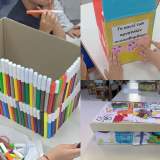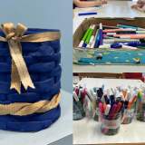 Επίσης φτιάξαμε μολυβοθήκες από εφημερίδες αλλά και θήκες για τους μαρκαδόρους μας από μεγάλα μπουκάλια νερού.