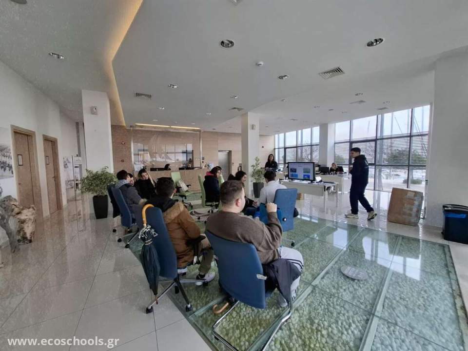 Η επίσκεψη ξεκίνησε με μια ενδιαφέρουσα παρουσίαση στο κτήριο διοίκησης, όπου οι μαθητές ενημερώθηκαν για τις απαιτήσεις που πρέπει να πληροί μια Μαρίνα για να βραβευτεί με τη "Γαλάζια Σημαία", ένα διεθνές σύμβολο ποιότητας και περιβαλλοντικής προστασίας.