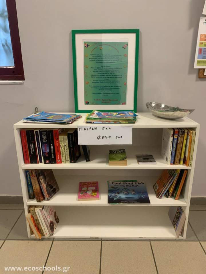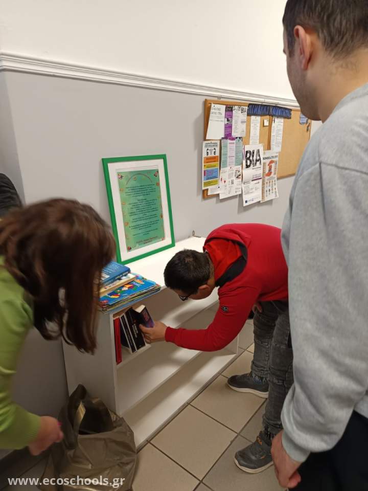 Στο πλαίσιο του περιβαλλοντικού μας προγράμματος "Δεν πετώ, ανακυκλώνω, τον πλανήτη δυναμώνω", δημιουργήσαμε με χαρά μια ανταλλακτική βιβλιοθήκη στον χώρο του ΚΕΠ Άργους Ορεστικού. Μαθητές και εκπαιδευτικοί του σχολείου μας συγκέντρωσαν χρησιμοποιημένα μεν αλλά σε καλή κατάσταση, βιβλία και δημιούργησαν μια νέα γωνιά γι' αυτά σε χώρο που μας παραχωρήθηκε από τον Δήμο Άργους Ορεστικού.