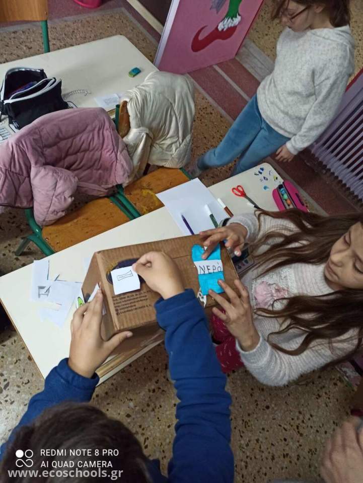 Με πολλή φαντασία και ομαδικό πνεύμα, οι μικροί μας οικολογικοί ήρωες ένωσαν τις δυνάμεις τους και δημιούργησαν χειροποίητους κάδους ανακύκλωσης για κάθε τάξη του σχολείου. Αρχικά, τα παιδιά σχεδίασαν διάφορα ανακυκλώσιμα υλικά, όπως χαρτιά, πλαστικά μπουκάλια, αλουμινένια κουτάκια και άλλα. Στη συνέχεια, τα χρωμάτισαν με ζωντανά χρώματα, δίνοντας ζωή στα υλικά και κάνοντας τη μάθηση διασκεδαστική. Τέλος, όλα αυτά τα έργα τέχνης κολλήθηκαν πάνω στους κάδους, μεταμορφώνοντάς τους σε πρωτότυπα και λειτουργικά εργαλεία ανακύκλωσης!
