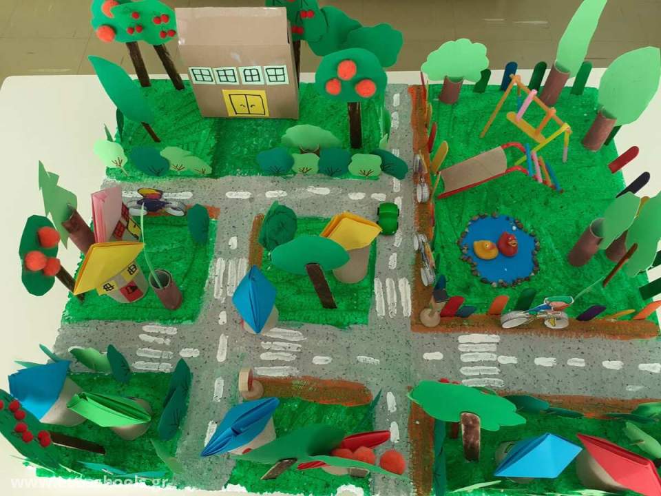Στο πλαίσιο του eTwinning προγράμματος "Μικροί Μετεωρολόγοι", οι μαθητές του νηπιαγωγείου συμμετείχαν στη δημιουργία μιας μακέτας με στόχο την εμπέδωση των παραγόντων που συμβάλλουν στη διατήρηση μιας δροσερής γειτονιάς. Τα παιδιά συνεργάστηκαν δημιουργικά και κατασκεύασαν μια μακέτα που περιλάμβανε δέντρα, πράσινους χώρους, παγκάκια σε σκιερές περιοχές, λιμνούλες και σπίτια με δέντρα στις αυλές τους. Μέσα από αυτή τη διαδικασία, τα παιδιά ανέπτυξαν οικολογική συνείδηση και γνώρισαν τη σημασία της φύσης και του σωστού αστικού σχεδιασμού για τη βελτίωση του μικροκλίματος της γειτονιάς τους.