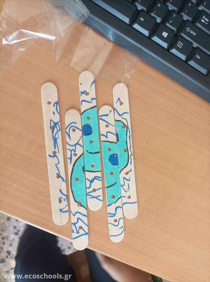 ### Κατασκευές με απλά υλικά Οι μαθητές αξιοποίησαν απλά υλικά ξύλου, όπως γλωσσοπίεστρα, για να κατασκευάσουν παιχνίδια και παζλ. Μέσα από αυτή τη διαδικασία, γνώρισαν τα στοιχεία και τις χημικές ενώσεις που υπάρχουν γύρω τους, αναπτύσσοντας παράλληλα τη δημιουργικότητα και τη φαντασία τους.