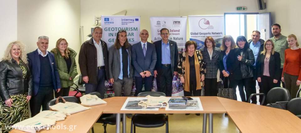Η συνάντηση πραγματοποιήθηκε την Παρασκευή 4 Απριλίου 2025 στο Τμήμα Γεωγραφίας του Πανεπιστημίου Αιγαίου και σε αυτή συμμετείχαν οι Καθηγητές Α. Κίζος, Πρόεδρος του Τμήματος Γεωγραφίας, Νικόλαος Ζούρος, Πρόεδρος του Παγκόσμιου Δικτύου Γεωπάρκων, Ν. Σουλακέλλης, Πρόεδρος του ΔΣ του Μουσείου Φυσικής Ιστορίας η κα. Κατερίνα Στρατάκη, Περιφερειακή Διευθύντρια Πρωτοβάθμιας και Δευτεροβάθμιας Εκπαίδευσης Β. Αιγαίου ο κ. Αιμιλιανός Ευαγγελινός, Περιφερειακός Επόπτης Ποιότητας, κ. Αντώνης Νείρος, Διευθυντής και η κα. Ιουλία Σαράντου, εκπαιδευτικός του Πρότυπου ΓΕΛ Μυτιλήνης, η κα. Μαρία Αντίκα, Υποδιευθύντρια του 4ου ΓΕΛ Μυτιλήνης, η κα. Κατερίνα Γιαννακού, Διευθύντρια και η κα. Ελένη Γυρέλλη, εκπαιδευτικός του 9ου Δημοτικού Σχολείου Μυτιλήνης και τα στελέχη του Μουσείου Φυσικής Ιστορίας Απολιθωμένου Δάσους Λέσβου κ. Ηλίας Βαλιάκος, κα. Κωνσταντίνα Μπεντάνα.