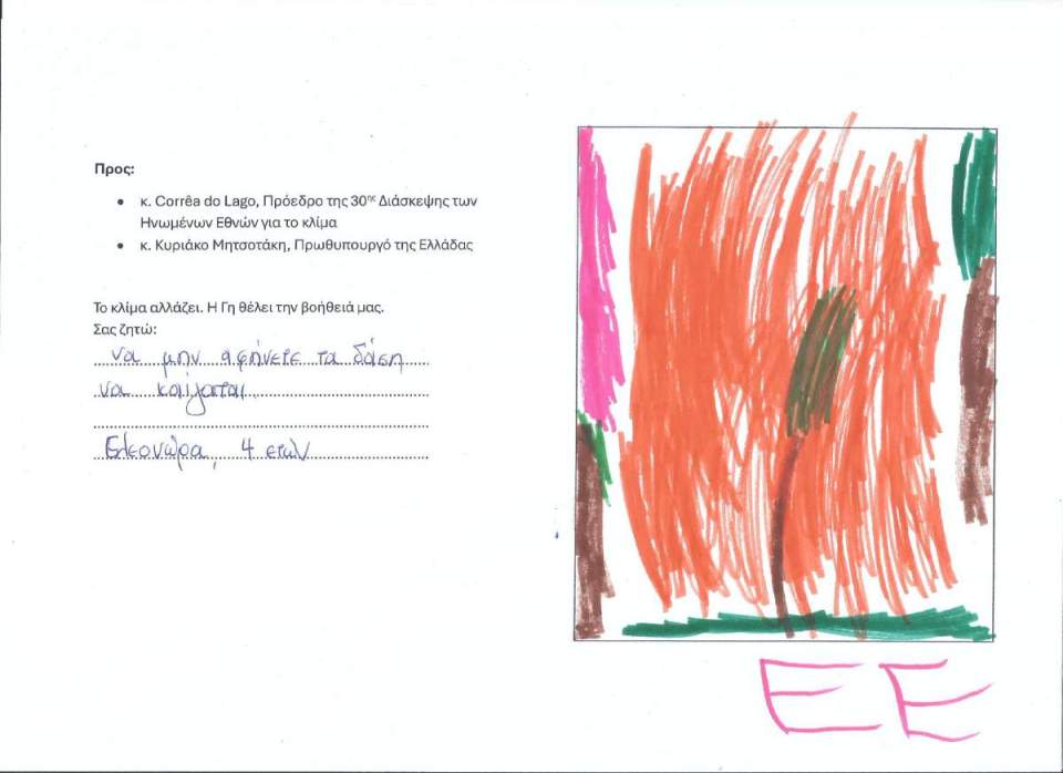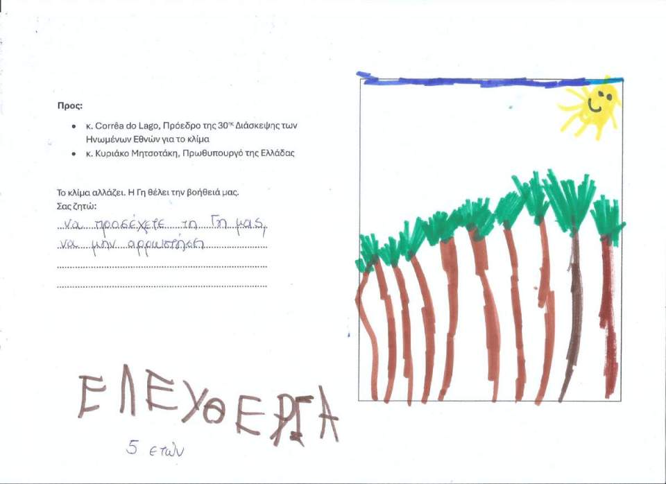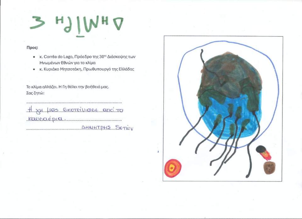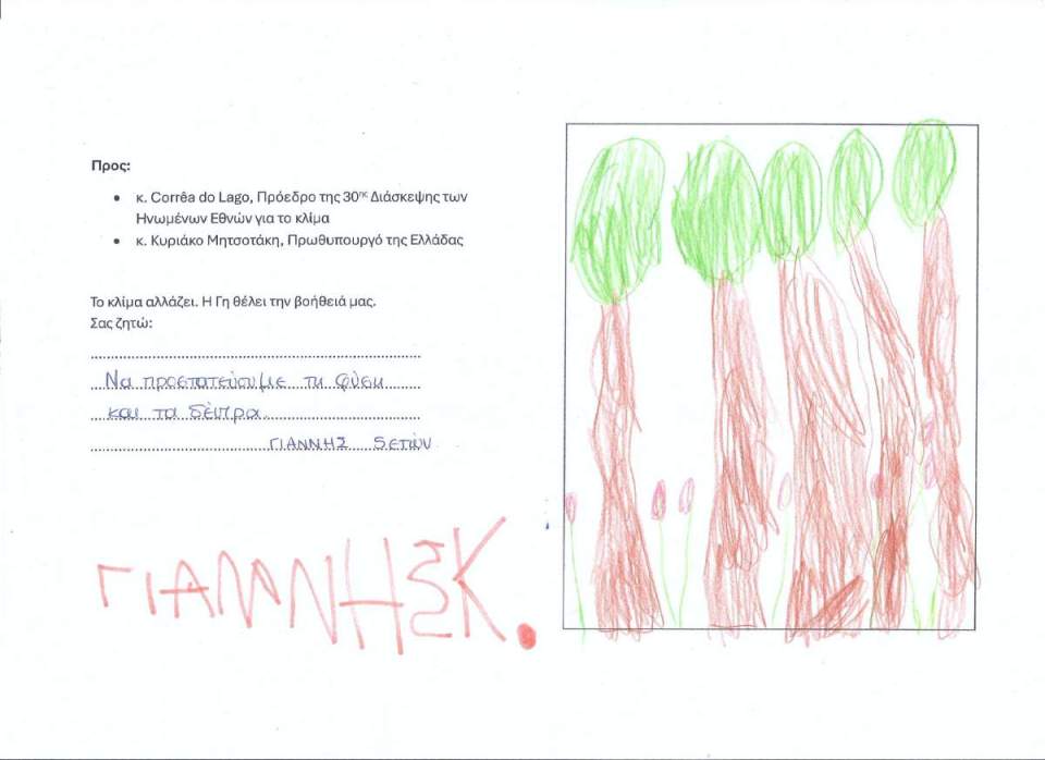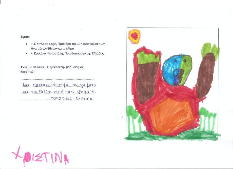 Τα παιδιά του 20ου Νηπιαγωγείου Θεσσαλονίκης αναλαμβάνουν δράση για το κλίμα και στέλνουν το μήνυμά τους στους παγκόσμιους ηγέτες που συναντιούνται στη Βραζιλία για να συζητήσουν τα μέτρα που λαμβάνουν για τη κλιματική κρίση.