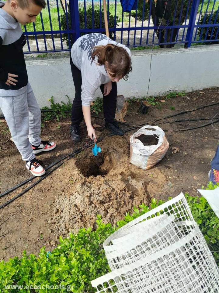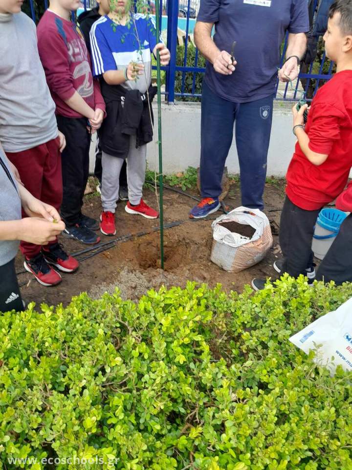 Την Παρασκευή 28 Μαρτίου δύο μικρά δέντρα φυτεύονται από τους μαθητές της Ε τάξης στην αυλή μας. Οι μαθητές συμμετείχαν σε όλα τα στάδια της φύτευσης και ανέλαβαν τη δέσμευση ότι θα τα φροντίσουν, ώστε να μεγαλώσουν.