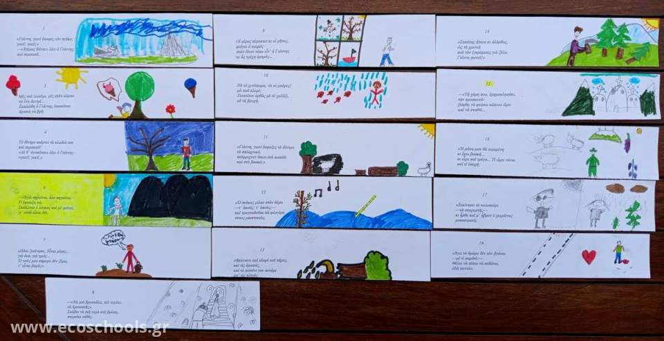 δικό τους χαρτονάκι. Έτσι, όλοι έφτιαξαν τα λεγόμενα «εικονοποιήματα» και ο καθένας απέκτησε με τη δική του προσπάθεια ένα ιδιαίτερο σελιδοδείκτη με θέμα το περιβάλλον, για να τον χρησιμοποιεί στα βιβλία του και να ωφελείται από το μήνυμα που προβάλλει.