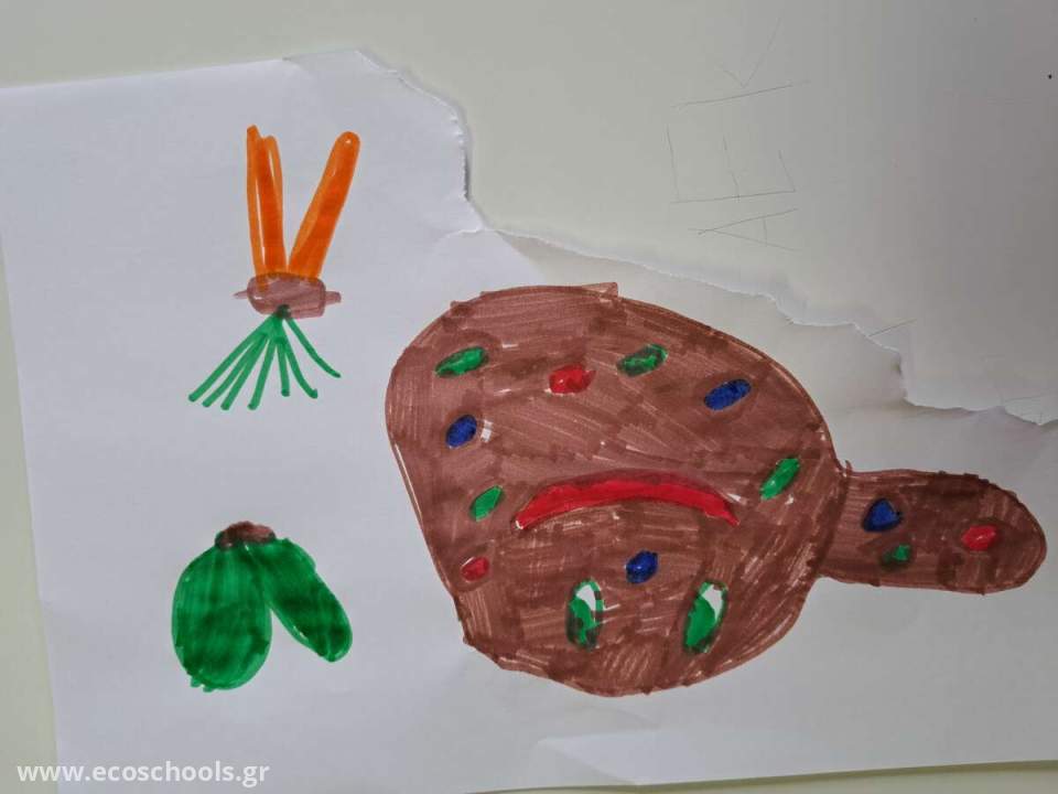Στο δεύτερο μέρος του εργαστηρίου η κυρία Σταυρούλα ζήτησε από τους μαθητές/τριες να ζωγραφίσουν ένα πολυβιταμινούχο φρούτο ή λαχανικό με τα μάτια της φαντασίας τους και οι μαθητές/τριες ανταποκρίθηκαν με ενθουσιασμό! Στο τρίτο μέρος οι μαθητές/τριες δοκίμασαν ένα ενεργειακό κολατσιό με μπανάνες, λιωμένη σοκολάτα και μπισκότα, το οποίο εξαφανίστηκε στο λεπτό!