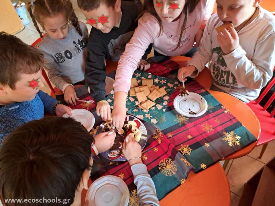 Στο τέλος οι μαθητές/τριες αποχαιρέτησαν την κυρία Σταυρούλα ψάλλοντας τα “Βυζαντινά Κάλαντα” και ανταλλάσσοντας ευχές για “Καλές γιορτές”.