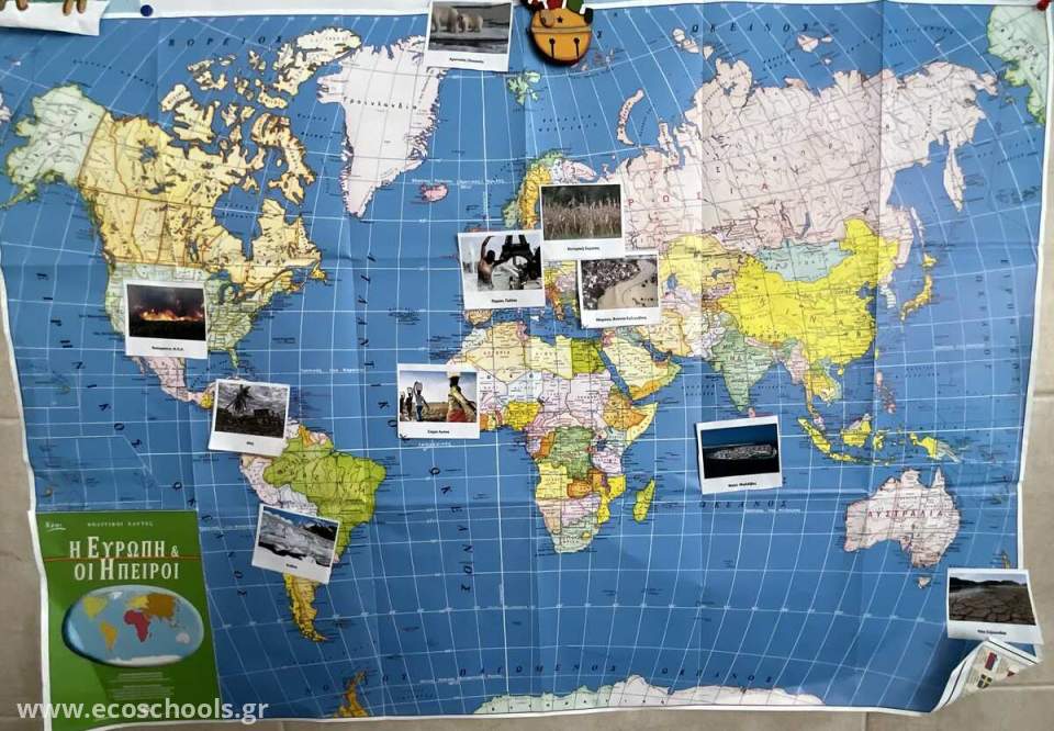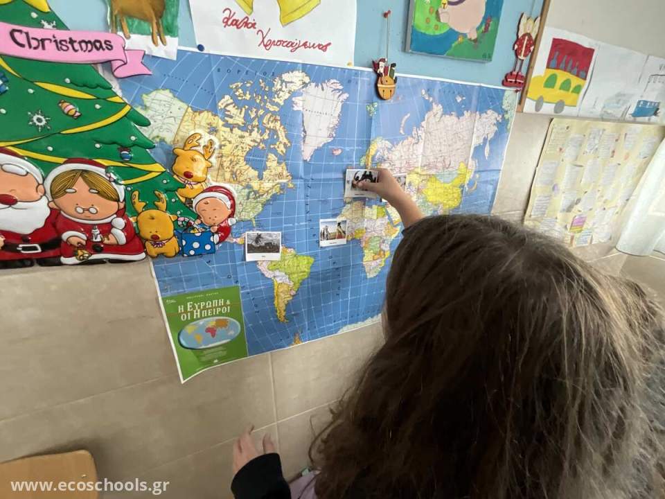 Οι μαθητές της Ε´ Δημοτικού παρακολούθησαν βίντεο που αφορούσαν το φαινόμενο του θερμοκηπίου, τις αιτίες και τις συνέπειες της κλιματικής αλλαγής καθώς και παραδείγματα περιοχών που έχουν πληγεί από φυσικές καταστροφές που οφείλονται στην κλιματική αλλαγή. Στις ομάδες τους ένωσαν κάρτες με τις επιπτώσεις της κλιματικής αλλαγής με τις κάρτες των περιοχών που εμφανίζονται και έπειτα τις εντόπισαν στον παγκόσμιο χάρτη. Επιπλέον, κατέγραψαν και παρουσίασαν στις υπόλοιπες ομάδες ποια δικαιώματα θεωρούν ότι παραβιάστηκαν στην περίπτωση των παιδιών που ζούσαν στην Κουτούμπντια και αναγκάστηκαν να εγκαταλείψουν τον τόπο τους.