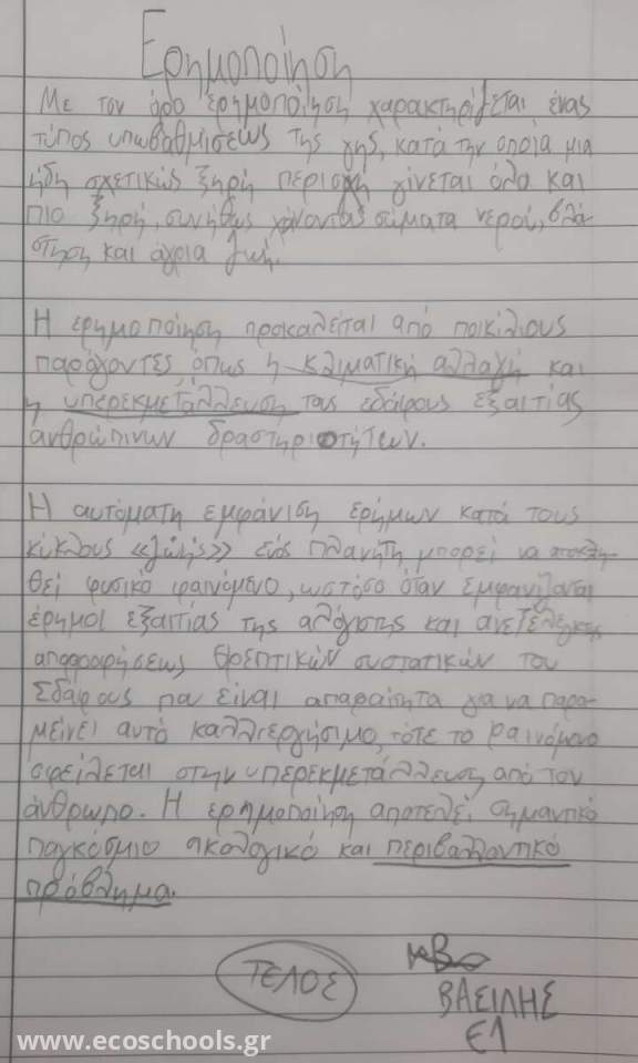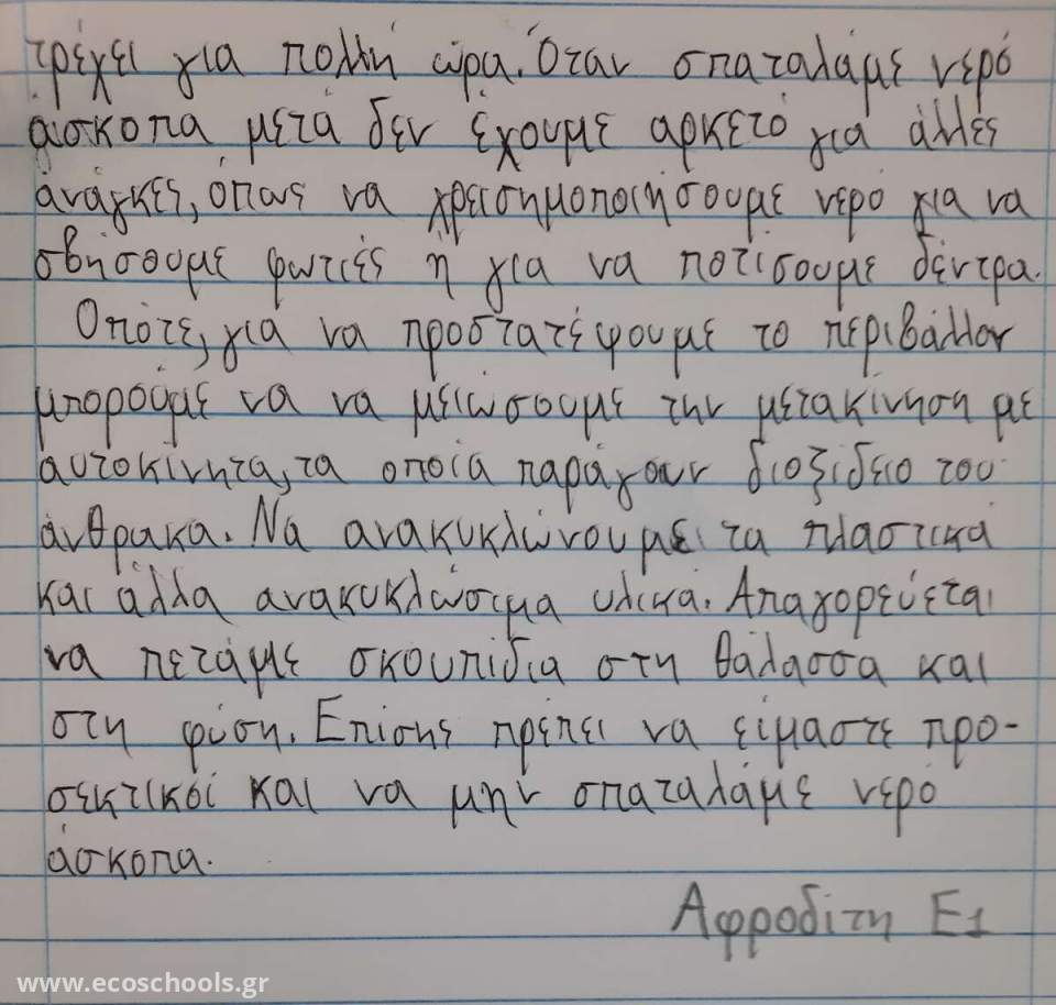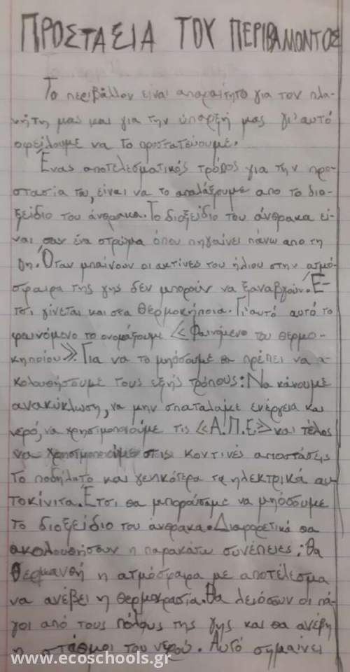 Οι μαθητές/τριες του Ε1 γράφουν εκθέσεις για το περιβάλλον και την προστασία τους.