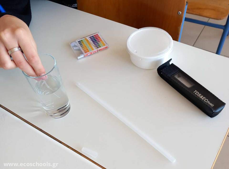 Στη συνέχεια εφοδιάστηκαν με θερμόμετρα, μετρητές αγωγιμότητας και πεχαμετρικά χαρτιά, κατέγραψαν τη θερμοκρασία, την αγωγιμότητα και το pH του δείγματος και τα συνέκριναν με τα επιτρεπτά όρια. Με βάση τα αποτελέσματα εξήγαγαν συμπεράσματα για την καταλληλότητα του νερού. Η δραστηριότητα αυτή βοήθησε τις μαθήτριες και τους μαθητές να κατανοήσουν την έννοια της ποιότητας του νερού και τη σημασία των φυσικοχημικών παραμέτρων του πόσιμου νερού.