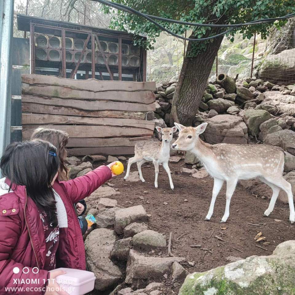 Την Τρίτη 21/1/2025 οι μαθητές του σχολείου μας είχαν την ευκαιρία να ζήσουν μια μοναδική εμπειρία κατά την επίσκεψή τους στη φάρμα Καριοφύλλη στον Λεπέτυμνο Λέσβου, στο πλαίσιο του προγράμματος “Μαθαίνω για τα Οικοσυστήματα και τα Δάση”. Η φάρμα, έκτασης 7 στρεμμάτων φιλοξενεί διάφορα ζώα, όπως ελάφια, αγριοκάτσικα, αγριοπρόβατα της Κύπρου,γαϊδουράκια, πόνυ, παγώνια, κουνέλια, πάπιες, χήνες και κότες, διαφορετικά είδη πτηνών της Ελλάδας, χρυσόψαρα και εντυπωσιακά Κόι αποτελώντας έναν πρότυπο χώρο φιλοξενίας και εκτροφής ζώων.