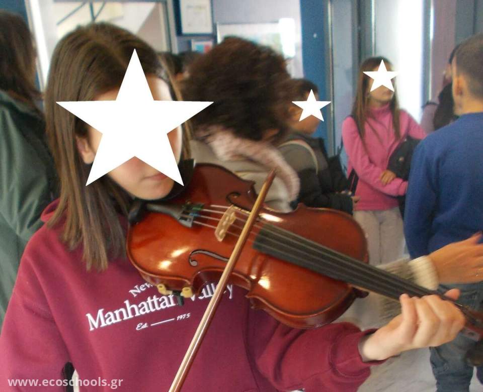 @ Μας υποδέχτηκαν 4 παλιοί μαθητές μας, που φοιτούν εκεί. Ύστερα ήρθε η σειρά της ξενάγησής μας σε όλες τις αίθουσες, αλλά και στα είδη μουσικής που διδάσκονται. Εδώ οι μαθητές άκουσαν λέξεις άγνωστες, όπως «πρόσεξε εδώ χάνεις το μέτρο», είδαν καθηγητές να καθοδηγούν τους μαθητές (νότα - νότα για να βγάλουν το κομμάτι) και ένοιωσαν πόσο δύσκολο είναι να συγχρονιστούν τα όργανα μια ορχήστρας κάτω από τη διεύθυνση του μαέστρου.