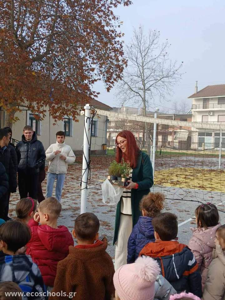 Οι μικροί μας φίλοι δεν ήρθαν με άδεια χέρια, αλλά μας πρόσφεραν ως δώρο αρωματικά βότανα για να σπείρουμε στον κήπο μας, γεμίζοντάς μας χαρά και αισιοδοξία. Η επίσκεψη αυτή αποτέλεσε μια όμορφη εμπειρία συνεργασίας και ανταλλαγής γνώσεων ανάμεσα στις δύο βαθμίδες εκπαίδευσης.