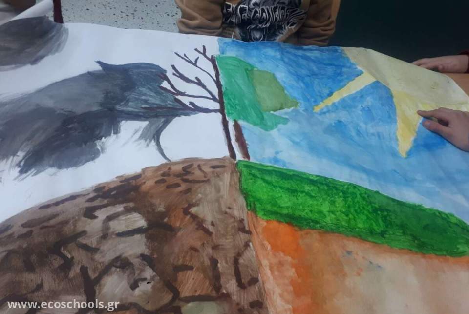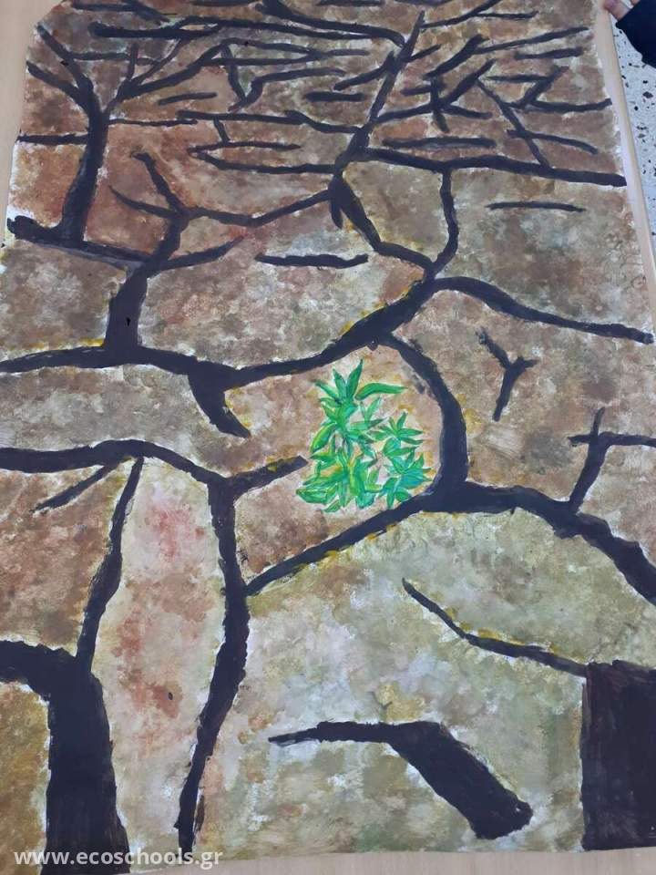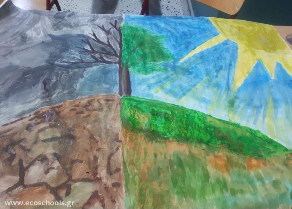 Οι μαθητές και μαθήτριες της Ε2 τάξης μαζί με τη δασκάλα των εικαστικών Βασιλική Σιώτη, δημιούργησαν αυτές τις ωραίες εικόνες που δείχνουν πολύ καλά το πρόβλημα που έχουμε να αντιμετωπίσουμε ως ανθρωπότητα.