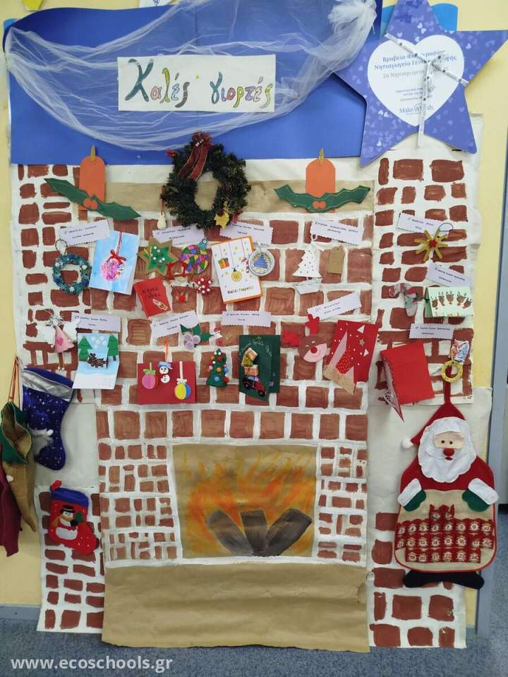 Οι κατασκευές των άλλων σχολείων που πήραμε στόλισαν το τζάκι μας ,λόγω Χριστουγέννων,τη είσοδο του νηπιαγωγείου!!!
