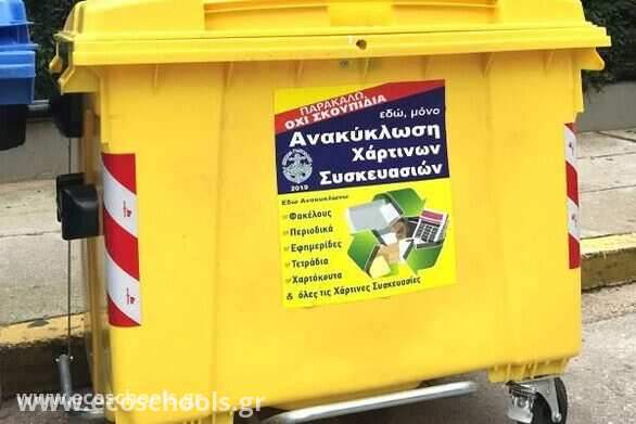 2.Αξιοποίηση κίτρινου κάδου ανακύκλωσης χαρτιού στην είσοδο του σχολείου