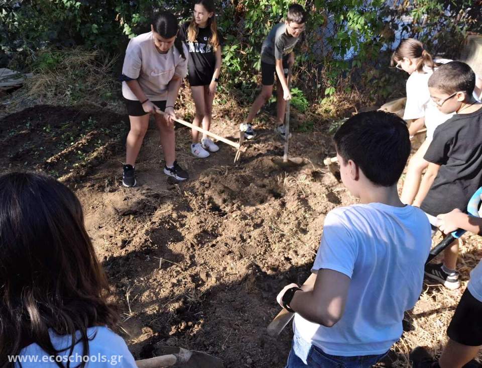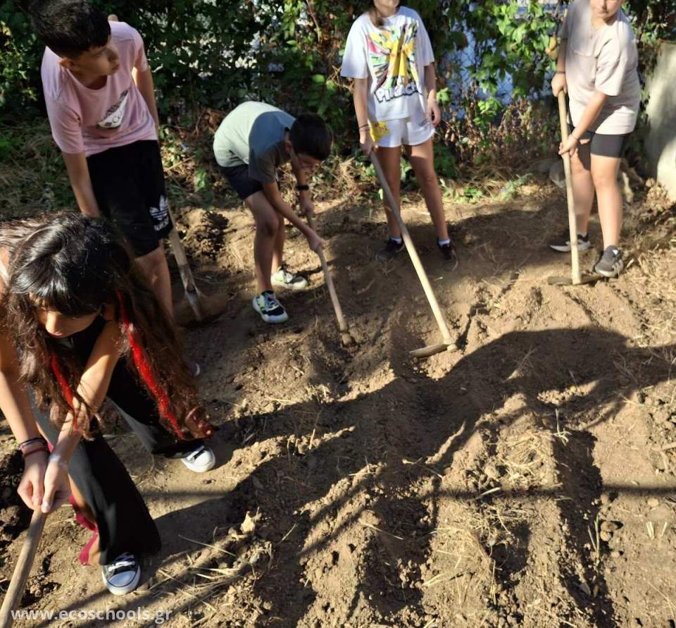 Οι μαθητές και μαθήτριες της ΣΤ1 τάξης προετοίμασαν το έδαφος για το φύτεμα των λαχανικών που θα ακολουθήσει.