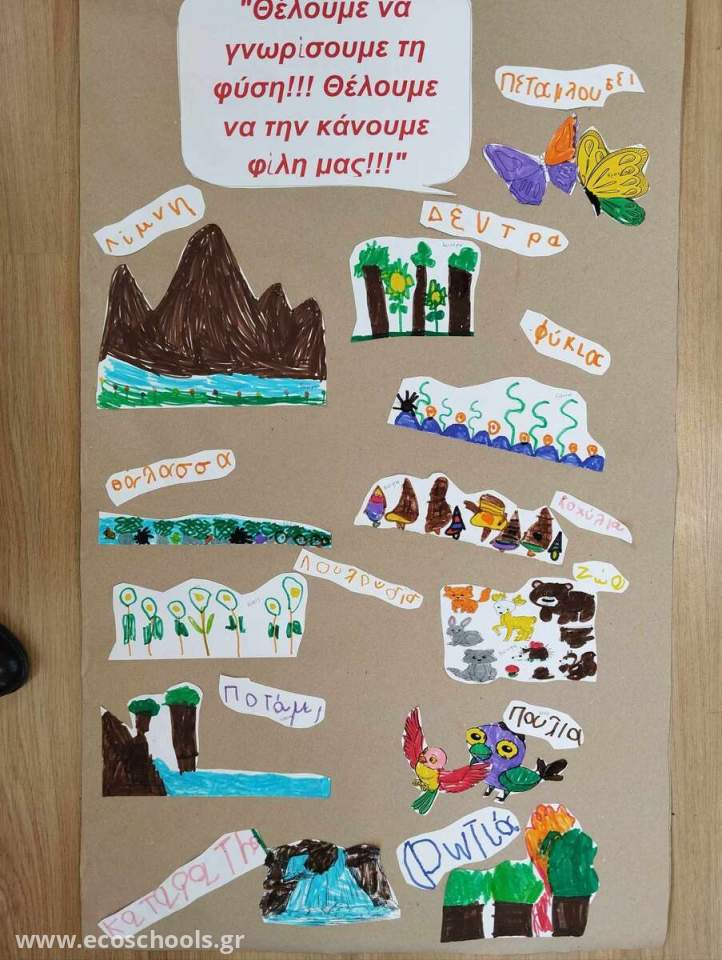 Στα πλαίσια του 2ου Θεματικού κύκλου: "Φροντίζω το περιβάλλον", το Νηπιαγωγείο μας ασχολήθηκε με την θεματική ενότητα: Με νοιάζει, θέλω και μπορώ. Τα παιδιά μέσα από το διαδίκτυο είδαν και σχολίασαν εικόνες της Φύσης, εξέφρασαν συναισθήματα , μίλησαν για τις εμπειρίες τους και θέλησαν να μάθουν καλύτερα τι είναι η Φύση, τι μας προσφέρει και ποιες οι συνέπειες από την αδιαφορία των ανθρώπων προς αυτή. Ξεκινήσαμε φτιάχνοντας ένα πολυτροπικό κείμενο με τίτλο: Θέλουμε να γνωρίσουμε τη Φύση. Θέλουμε να την κάνουμε φίλη μας ,όπου τα παιδιά ζωγράφισαν αυτά που ήθελαν να μάθουν για τη φύση και κάπως έτσι συνεχίσαμε το ταξίδι μας στις ομορφιές του κόσμου που μας περιβάλλει.