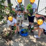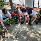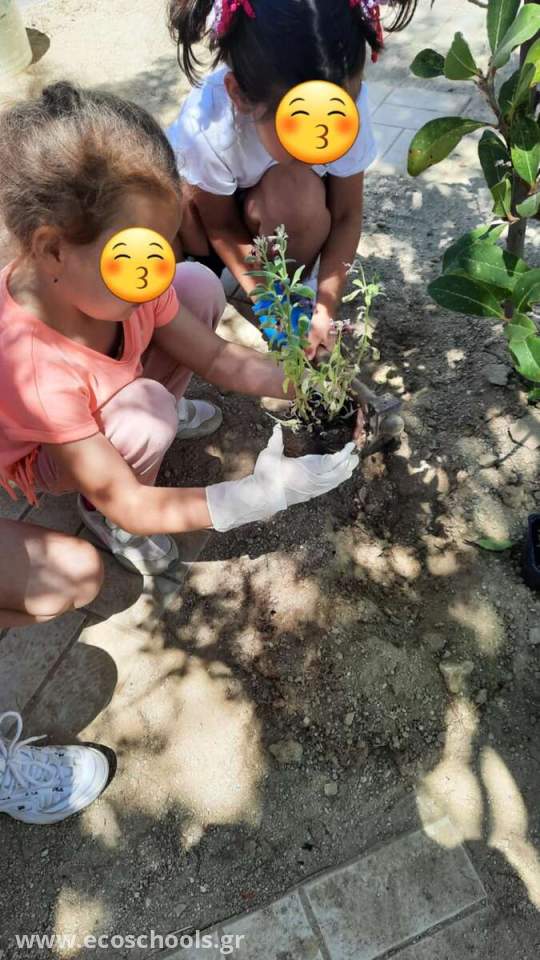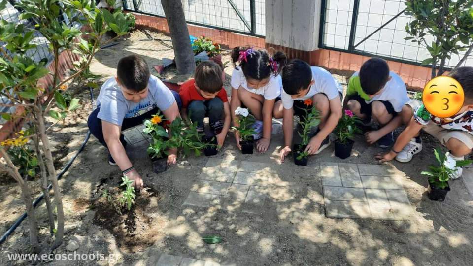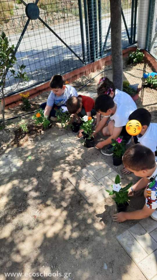 Οι γονείς των παιδιών έφεραν στο νηπιαγωγείο μας λουλούδια και τα παιδιά τα φύτεψαν στον ειδικά διαμορφωμένο χώρο .Η βοήθεια των γονέων ήταν αναγκαία γιατί το μέρος σκάφτηκε ,έβαλαν βιολογικό χώμα και τα παιδιά μπόρεσαν να φυτέψουν τα λουλούδια .Τα ποτίζουν καθημερινά και παρατηρούν πόσο μεγαλώνουν και πόσο όμορφα μυρίζουν .