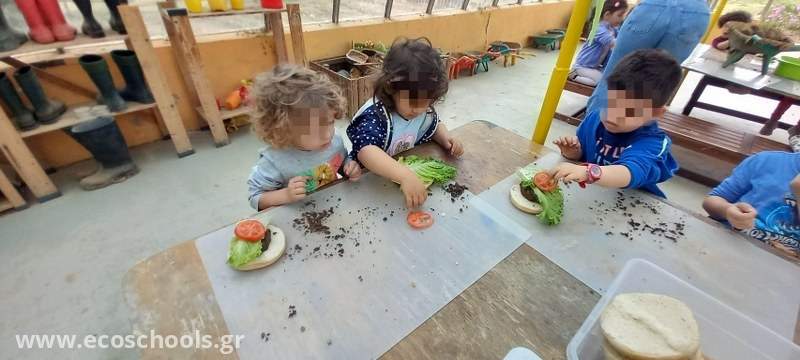 Μια δραστηριότητα περιβαλλοντικού χαρακτήρα και οικολογικού αποτυπώματος, προωθώντας τη σημασία της κοσμποστοποίησης και της φύτευσης αγαθών. Ψωμί, μαρούλι, ντομάτα και χώμα αναμεμειγμένο με σπόρους φακής έτοιμο προς φύτευση σε γλάστρα του σπιτιού ή του λαχανόκηπου.