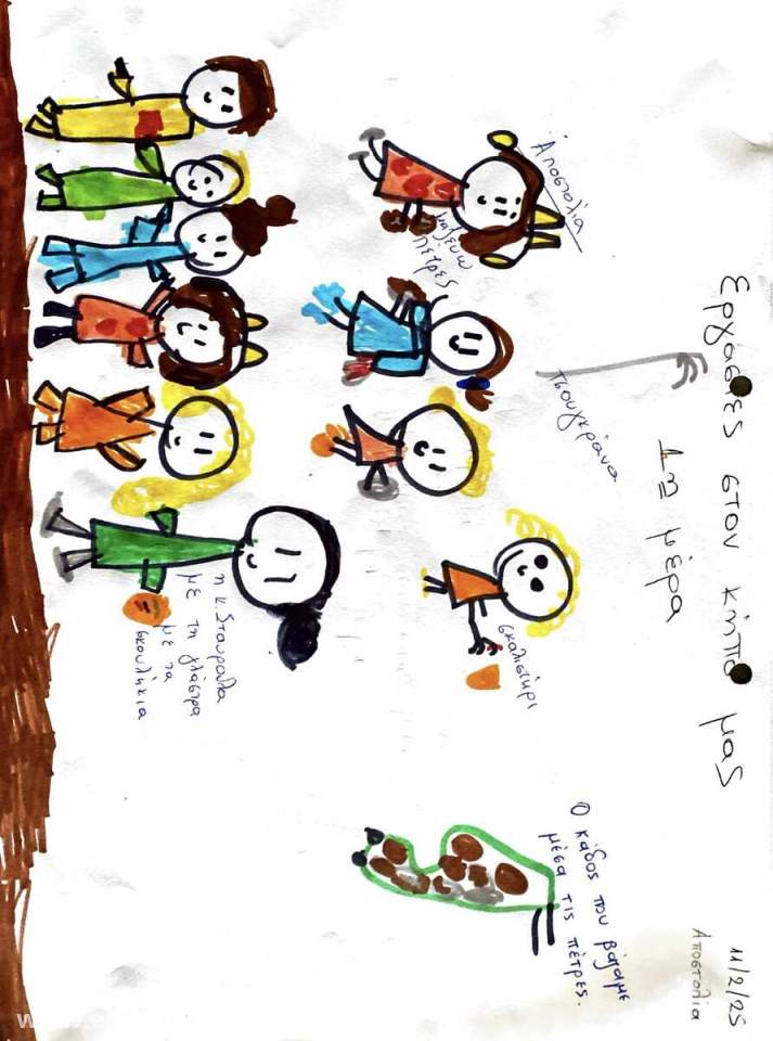 Τα παιδιά μας αποτύπωσαν στο χαρτί την εμπειρία τους από τις ασχολίες στον νέο κήπο του Νηπιαγωγείου μας. Ήταν ενθουσιασμένα και ρωτούσαν πότε θα είναι η επόμενη μας δραστηριότητα.