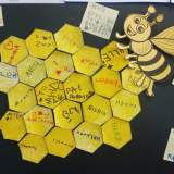 Ζωγραφίσαμε τη δική μας κυψέλη , με συνθήματα από τα ίδια τα παιδιά για τη διάσωση των μελισσών.