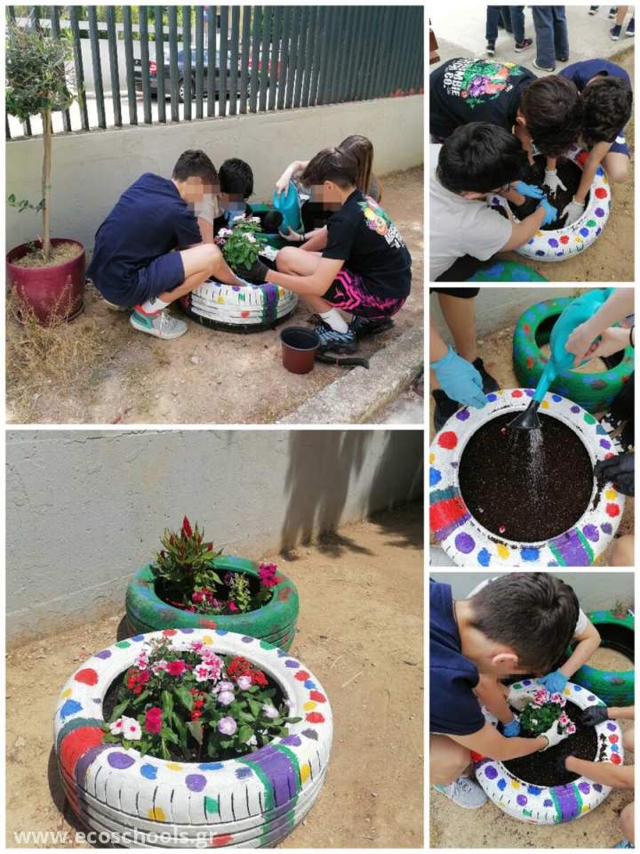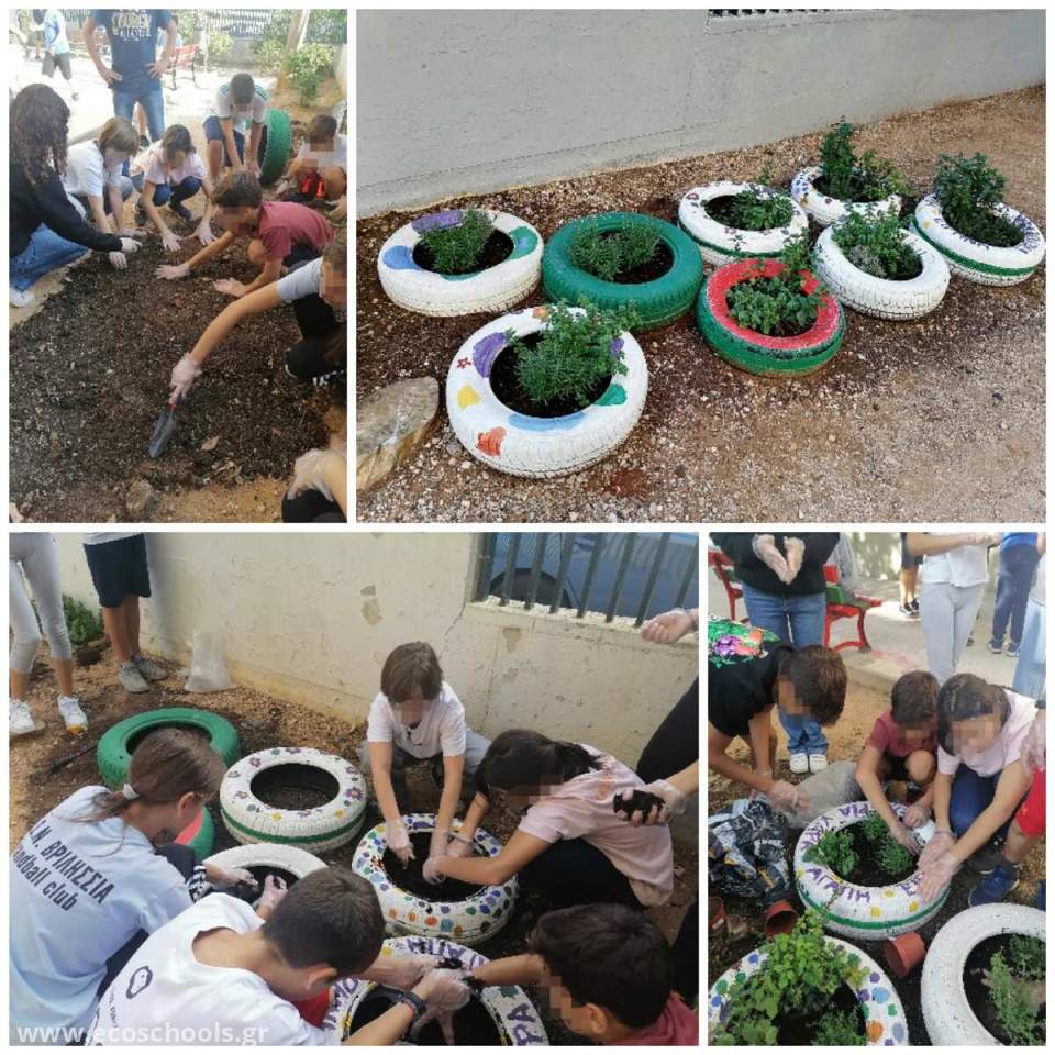 Στο 1ο Γυμνάσιο Βριλησσίων τα παιδιά ανανέωσαν τις γωνιές λουλουδιών και αρωματικών φυτών, τις οποίες πότιζαν και περιποιούνταν ανελλιπώς.