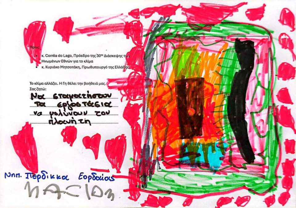 Οι μαθητές του Νηπιαγωγείου Περδίκκα εν όψει της COP 30 και μέσα από τις ζωγραφιές τους συμμετέχουν σε αυτή τη δράση, ενώνουν τις φωνές τους με τα παιδιά από τα άλλα σχολεία και στέλνουν τα μηνύματα τους στους παγκόσμιους ηγέτες, μηνύματα υπέρ της προστασίας των οικοσυστημάτων που θα εξασφαλίσουν τη βιωσιμότητα του πλανήτη.