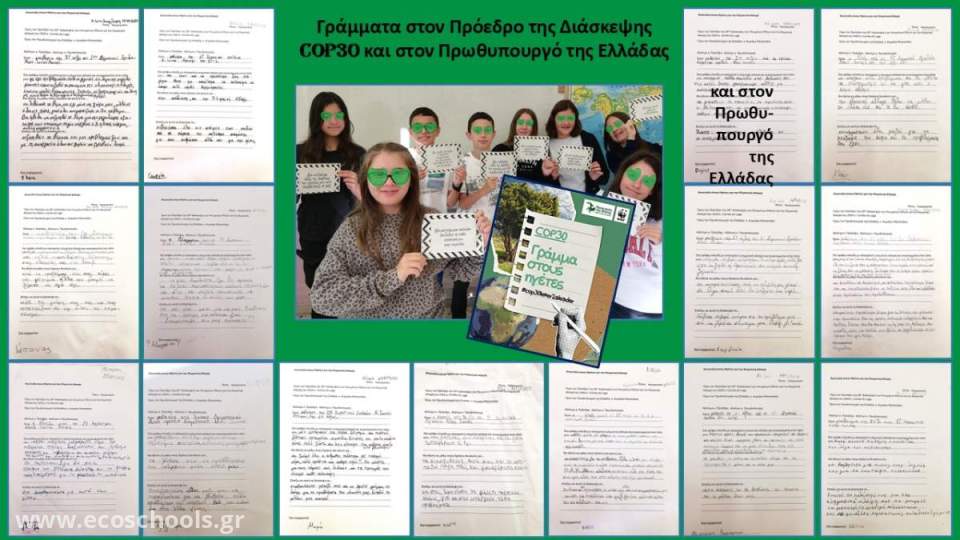 Τα παιδιά της ΣΤ΄2 τάξης γράφουν για την κλιματική αλλαγή απαιτώντας να ληφθούν μέτρα για τον μετριασμό της, να δεσμευτούν τα κράτη σε κοινούς στόχους, να συνεργαστούν για να επιτευχθούν λύσεις σε περιβαλλοντικά προβλήματα που μαστίζουν όλο τον πλανήτη.
