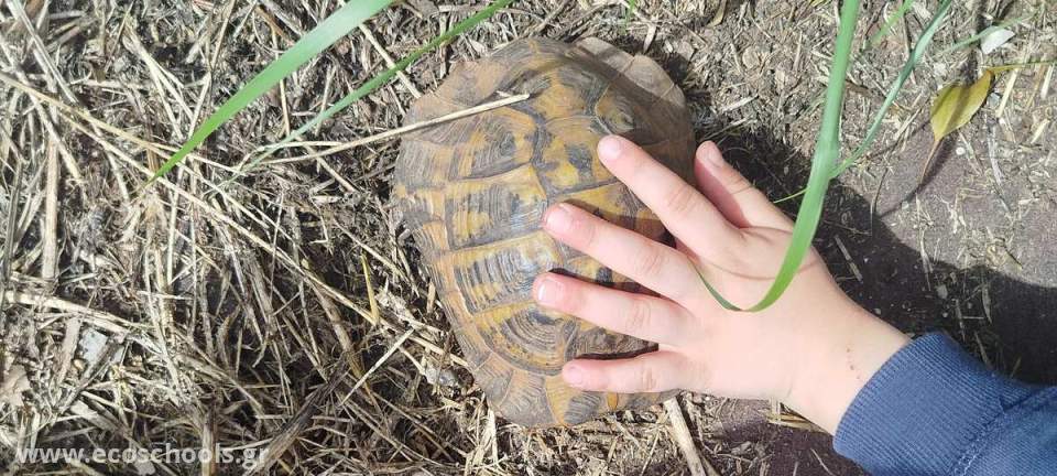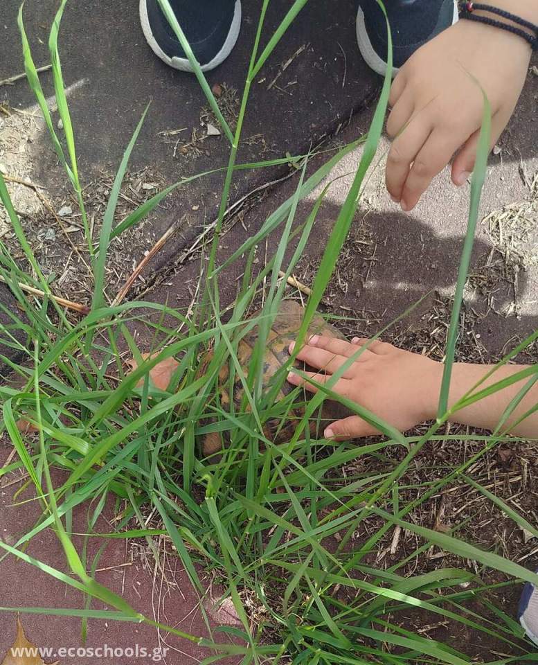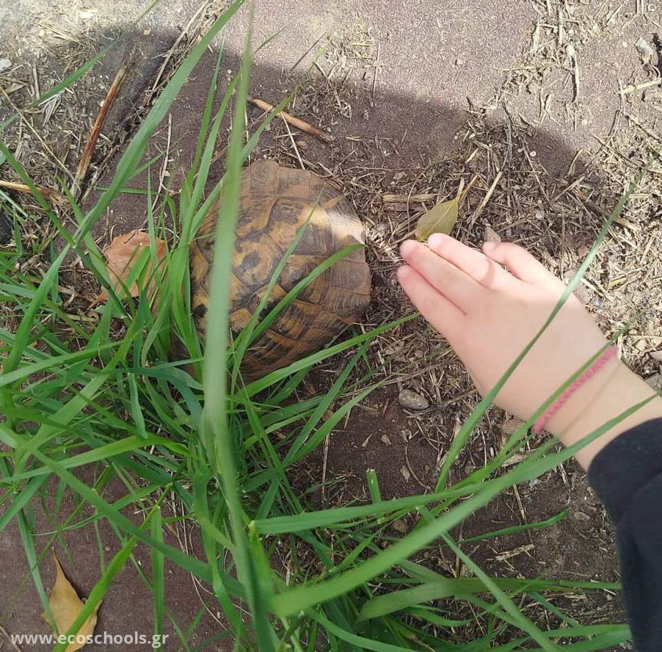 Η χελώνα μας ζει στην κάτω αυλή του σχολείου μας..
