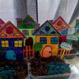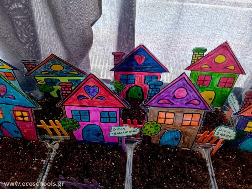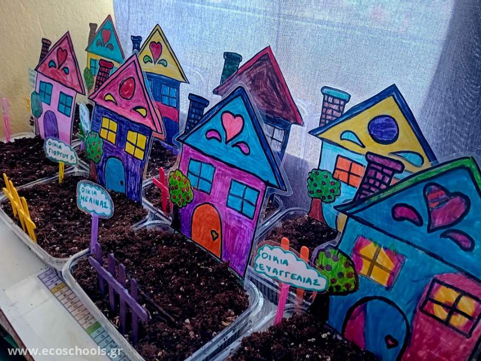 Στο πλαίσιο της εισαγωγής των μαθητών/τριών της πρώτης τάξης στα περιβαλλοντικά προγράμματα, αποφασίσαμε να δημιουργήσουμε "Το χωριό της Α΄Τάξης". Αφού ζωγραφίσαμε τα σπιτάκια μας, κάναμε φράχτες και ταμπελίτσες, γεμίσαμε δοχεία με χώμα, φυτέψαμε γρασίδι και το ποτίσαμε. Οι μαθητές/τριες θα είναι υπεύθυνοι/ες για την αυλή του σπιτιού τους για όλη τη διάρκεια της σχολικής χρονιάς, ώστε το γρασίδι τους να παραμένει πράσινο και να το κουρεύουν.