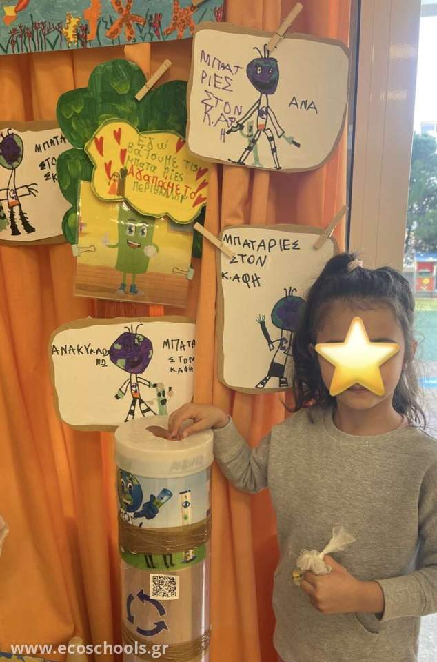 Στο σχολείο μας κάθε τμήμα έχει το δικό του κάδο Αφής, το οποίο τα παιδιά όχι μόνο γεμίζουν με χαρά, αλλά συμμετέχουν ενεργά και στο διαγωνισμό της εταιρείας κάθε χρόνο το "Κηνύγι της Χαμένης Μπαταρίας".