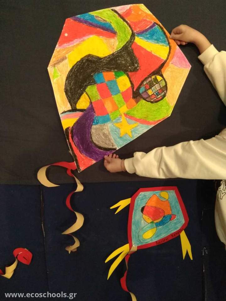 Τα παιδιά έκαναν κατασκευές, χειροτεχνίες και ζωγραφιές με θέμα τους χαρταετούς που στέλνουν τα μηνύματά τους ψηλά, σε όλους! Εκθέσαμε τα έργα, στολίσαμε και ομορφύναμε στους χώρους του σχολείου μας και μέσα από την Τέχνη διαδώσαμε τα μηνύματά μας.