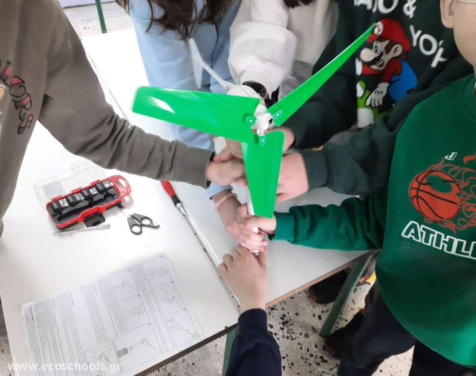Οι μαθητές/τριες του Ε1 συναρμολόγησαν μία εκπαιδευτική ανεμογεννήτρια και έμαθαν για τον τρόπο λειτουργίας της και τα οφέλη της στο περιβάλλον.