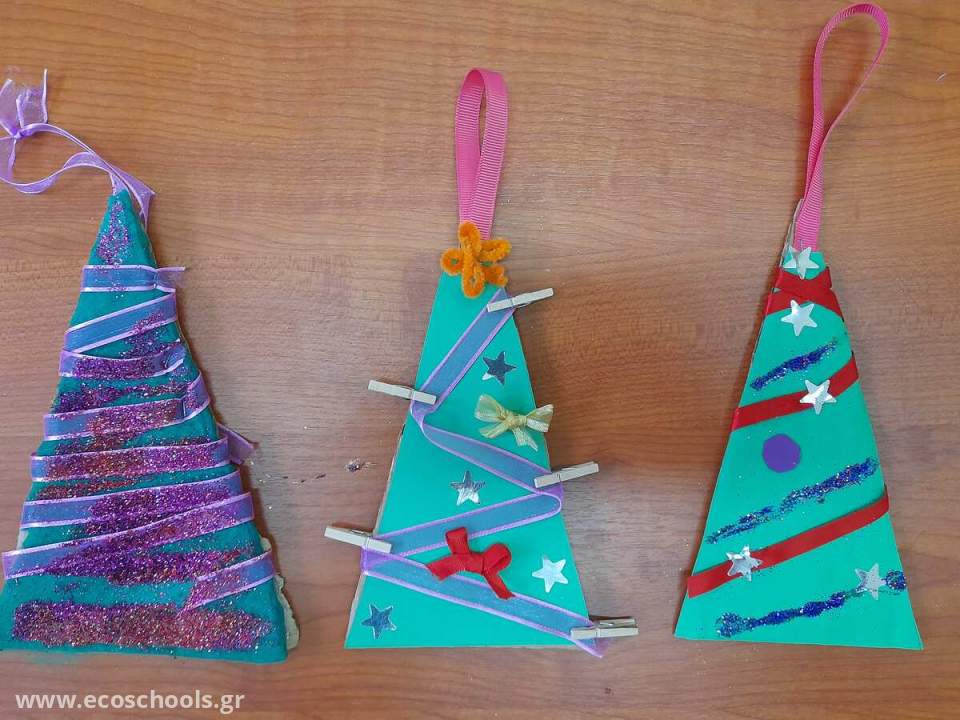 Με χαρτόκουτες, κορδελες , χρυσόσκονη και περισευόμενα χαρτιά, χρησιμοποιώντας την φαντασία μας φτιάξαμε Χριστουγεννιάτικα στολίδια