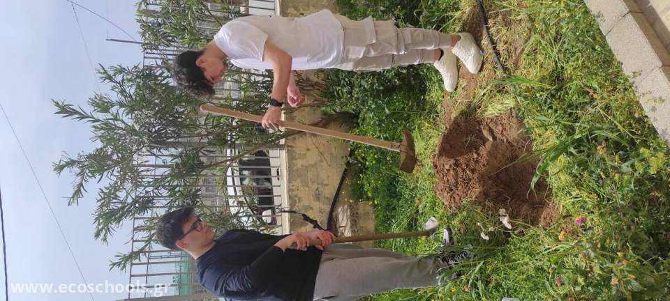 Η πρώτη δράση που πραγματοποίησαν ομάδα μαθητών ήταν ο καθαρισμός της σχολικής αυλής αλλά και η φύτευση 4 εσπεριδοειδών δέντρων.