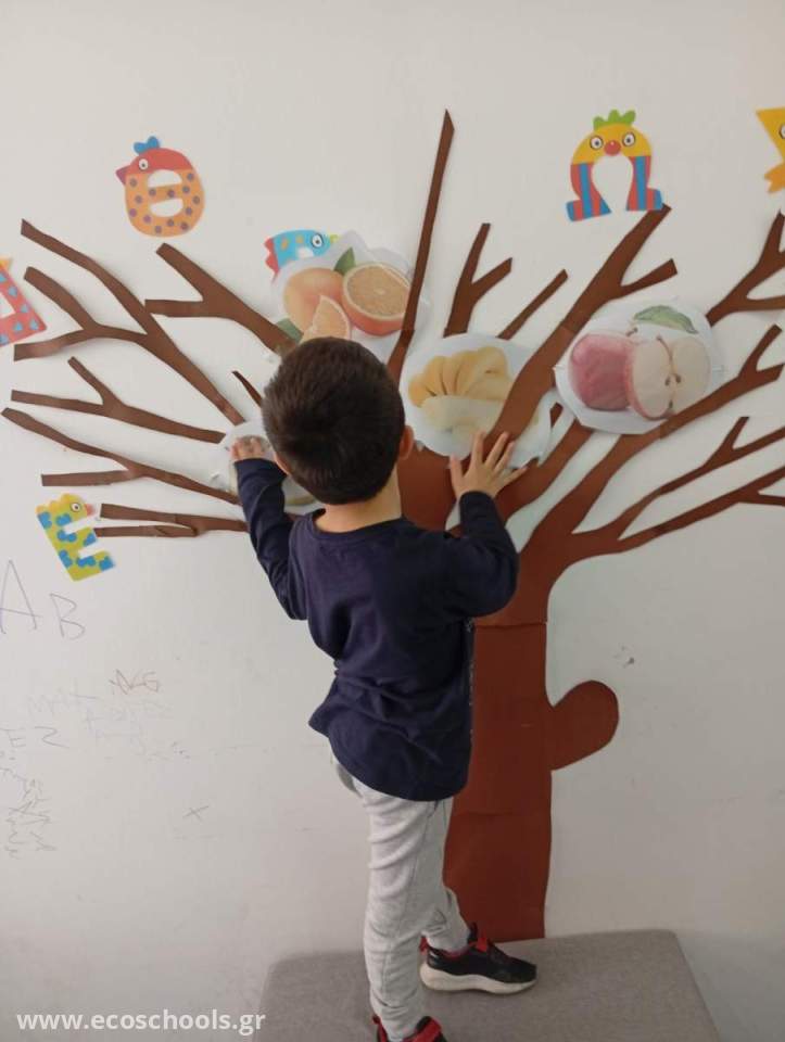 Κάθε φορά που ο εκπαιδευτικός σηκώνει ένα φρούτο από το δέντρο: