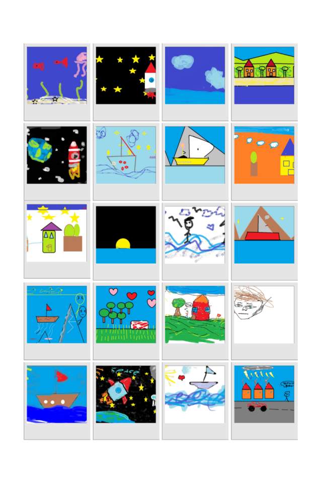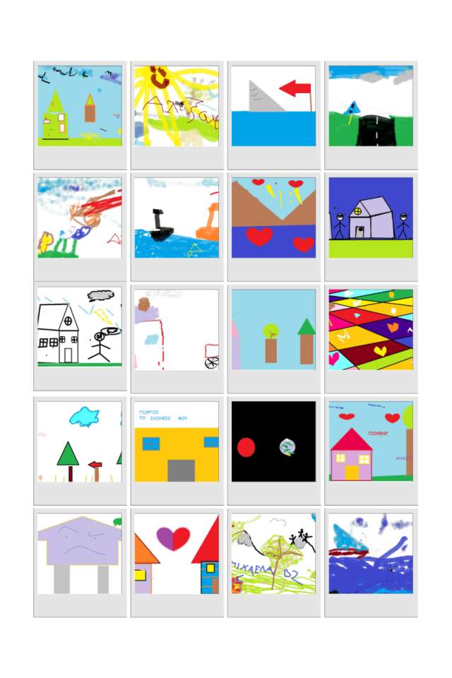 Τα έργα τους, λόγω περιορισμένου χώρου, παρουσιάζονται εδώ σε μορφή κολάζ – μια πολύχρωμη σύνθεση που αποτυπώνει τη χαρά της δημιουργίας και την ποικιλομορφία της έκφρασης κάθε παιδιού.