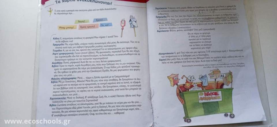Στο μάθημα της Γλώσσας της Γ' Δημοτικού,, με τίτλο "Ο Κόσμος γύρω μας" υλοποιήθηκε δραστηριότητα στο τμήμα Γ΄2, με στόχο τη συνειδητοποίηση των παιδιών για τον κόσμο που μας περιβάλλει και τη σπουδαιότητα της ανακύκλωσης, μέσα από φύλλα εργασίας που ήδη υπάρχουν στο βιβλίο τους, με ποικίλες δραστηριότητες.