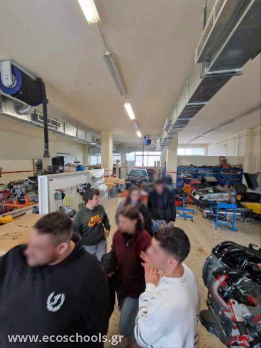 Ιδιαίτερο ενδιαφέρον προκάλεσαν στους/στις μαθητές/μαθήτριές μας οι σύγχρονες εγκαταστάσεις, τα εξειδικευμένα μηχανήματα, τα τεχνικά έργα και οι κατασκευές των μαθητών/μαθητριών του ΕΠΑ.Λ. με διάφορα μέταλλα, καθώς και τα εξειδικευμένα εργαστήρια μηχανολογίας, όπως το εργαστήριο μηχανών αυτοκινήτων και μοτοσυκλετών και το εργαστήριο ψυκτικών εφαρμογών. Η εμπειρία κορυφώθηκε με την παρακολούθηση επίδειξης συγκόλλησης, στην οποία οι μαθητές/μαθήτριές μας συμμετείχαν ενεργά, χρησιμοποιώντας τον απαραίτητο ειδικό εξοπλισμό, βιώνοντας έτσι τη μαθησιακή διαδικασία με τρόπο βιωματικό και ουσιαστικό.