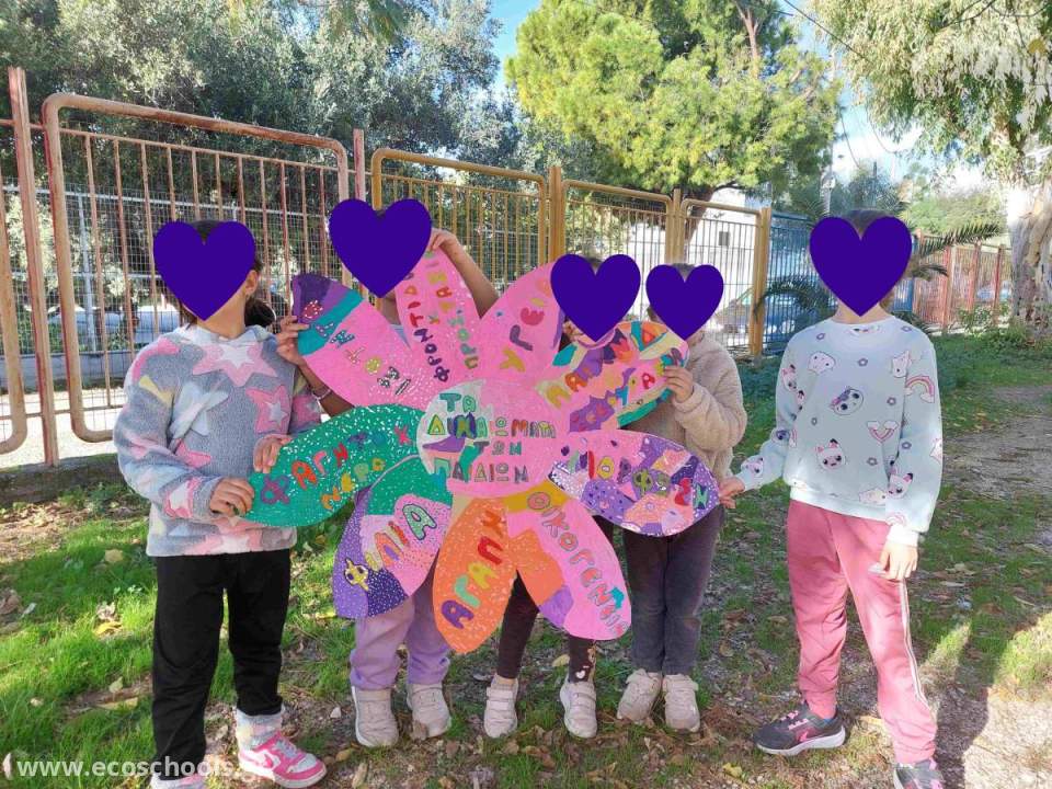 Αφού συζητήσαμε στην τάξη τι σημαίνει «δικαίωμα» και ποια από αυτά προστατεύει η Σύμβαση του ΟΗΕ, τα παιδιά επεξεργάστηκαν εικόνες, παραδείγματα και καθημερινές καταστάσεις. Έπειτα, με πολλή δημιουργικότητα, συνεργασία και διάθεση για έκφραση, δημιούργησαν το δικό τους “Λουλούδι των Δικαιωμάτων”.