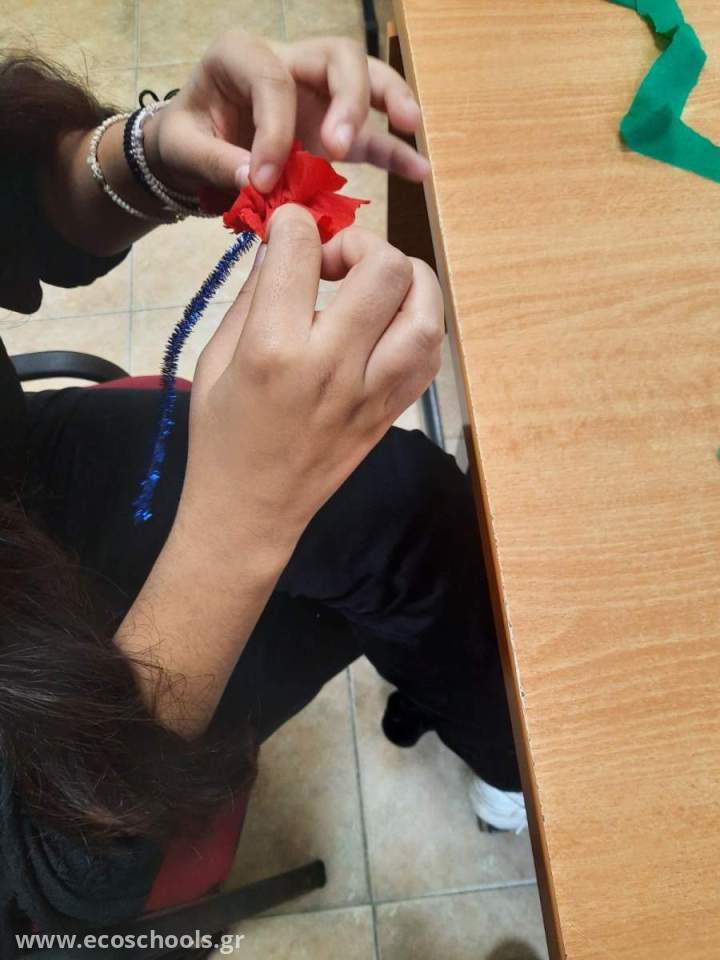Οι μαθητές όλων των τάξεων εργάστηκαν με ενθουσιασμό, χρησιμοποιώντας γκοφρέ χαρτί, καλαμάκια και κόλλα για να δημιουργήσουν τα δικά τους λουλούδια. Κατά τη διάρκεια της δραστηριότητας, είχαν την ευκαιρία να συζητήσουν για τα γεγονότα του Νοέμβρη του 1973, να ανταλλάξουν σκέψεις και να συνδέσουν τη δημιουργική διαδικασία με την ιστορική μνήμη.