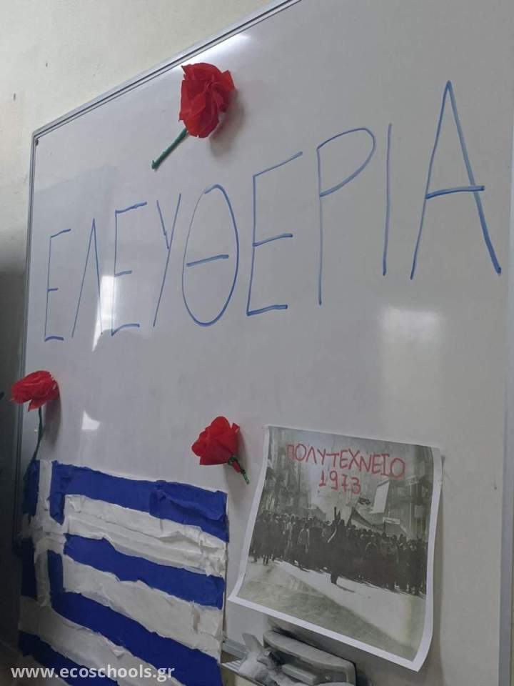 Στο τέλος, τα χάρτινα γαρίφαλλα στόλισαν τους διαδρόμους και τις αίθουσες του σχολείου, προσδίδοντας μια ζεστή και συμβολική ατμόσφαιρα. Μέσα από αυτή τη μικρή αλλά ουσιαστική δράση, οι μαθητές μας υπενθύμισαν ότι οι αξίες της δημοκρατίας συνεχίζουν να εμπνέουν και να καθοδηγούν τις νέες γενιές.