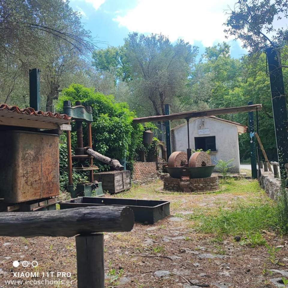Το υπαίθριο ελαιοτριβείο περιλαμβάνει ακόμα το αυθεντικό πιεστήριο, τους μυλόλιθους και τη δεξαμενή ελαιοζύμης. Δίπλα του, σώζεται και ένας παραδοσιακός νερόμυλος, Οι μαθητές παρακολούθησαν πώς η δύναμη του νερού μετατρεπόταν σε κινητήρια ενέργεια, μαθαίνοντας για την τεχνολογική ευρηματικότητα των παλαιότερων γενεών.