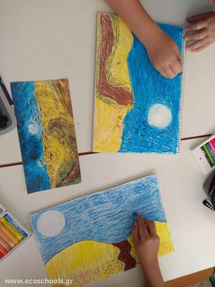 Συγκεκριμένα: * Ως μέλη της διεθνούς κοινότητας των «Οικολογικών σχολείων» αξιοποιήσαμε υλικά προς ανακύκλωση στις δημιουργίες μας, μεταδίδοντας περιβαλλοντικά μηνύματα * τα έργα Land Art των παιδιών, στο σχολικό κήπο του Σχολείου μας, τους έδωσαν ιδιαίτερη χαρά * Τα παιδιά φιλοτέχνησαν ομαδικές εργασίες και αφίσες για την Παγκόσμια Ημέρα Περιβαλλοντικής Εκπαίδευσης στις 14 Οκτωβρίου 2024 * Συμμετείχαμε στο διεθνές πρόγραμμα του «Plastic Clever Schools» * Έργα χαρτοδιπλωτικής (origami) δημιουργήθηκαν από χαρτιά προς ανακύκλωση * Το δημιουργικό παιχνίδι ένωσε τα παιδιά διαφορετικών τάξεων, με διαθεματική προσέγγιση και την σύνδεση εικαστικών και φυσικής αγωγής * Κάναμε ομαδικές εργασίες εμπνευσμένες από τα έργα των μεγάλων δημιουργών της Ιστορίας της Τέχνης και τα παιδιά συμπορεύτηκαν μαθαίνοντας για Έλληνες και ξένους δημιουργούς πάνω στους χαρταετούς που φιλοτέχνησαν. Από τον Λάμπρο Ορφανό, την Έλλη Μουρέλου – Ορφανού, τον Γαΐτη, την Βάσω Κατράκη, τον Παναγιώτη Τέτση, τον Απέργη και άλλους Έλληνες δημιουργούς έως τον Vincent Van Gogh, τον Paul Klee, τον Joan Miró, τον Kandinsky, τον Leonardo Da Vinci και άλλους.