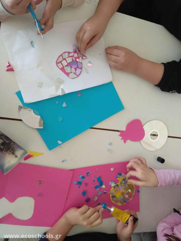 Οι μεγαλύτεροι μαθητές και μαθήτριες του Σχολείου μας συνεργάζονταν με τα μικρότερα παιδιά, τόσο μέσα στις σχολικές αίθουσες όσο και στον προαύλιο χώρο του Σχολείου. Τα μαθήματα υλοποιήθηκαν στο πρωινό ωρολόγιο πρόγραμμα και στο ολοήμερο, στο πλαίσιο της διδασκαλίας των Εικαστικών.