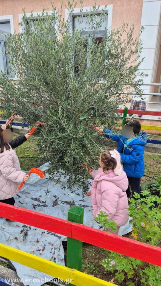 Μαζεύοντας τις ελιές από τα ελαιόδεντρα του Νηπιαγωγείου μας!